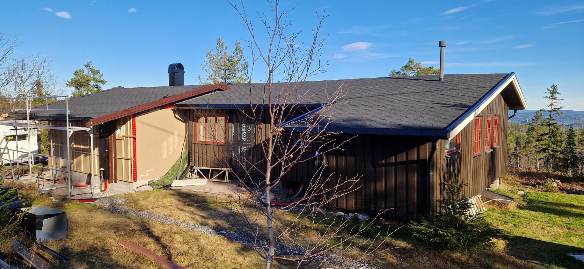Taket på tilbygget ble ferdig i dag. Strømskap utvendig er montert.