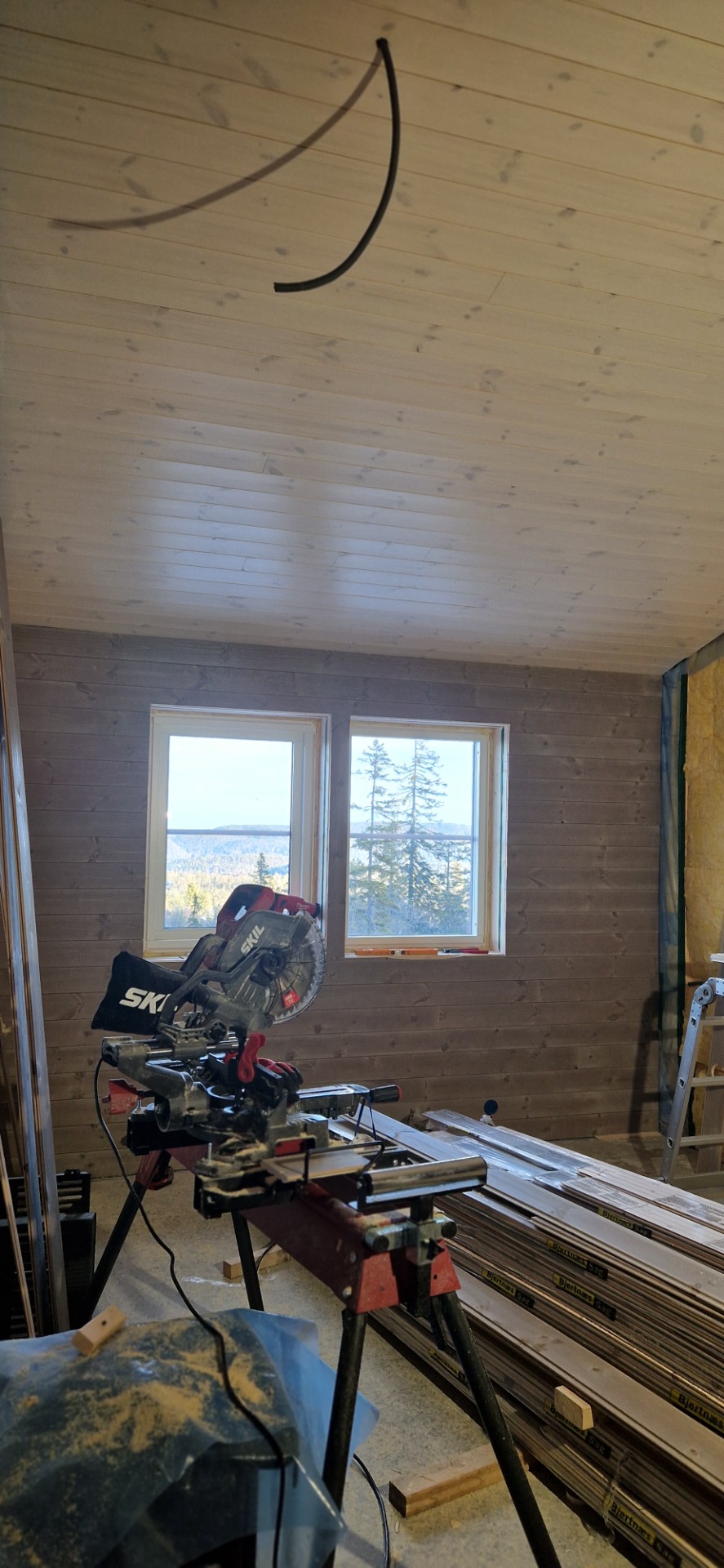 Minus 18 i morgentimen. Snekkeren driver inne i stua i pluss 4.