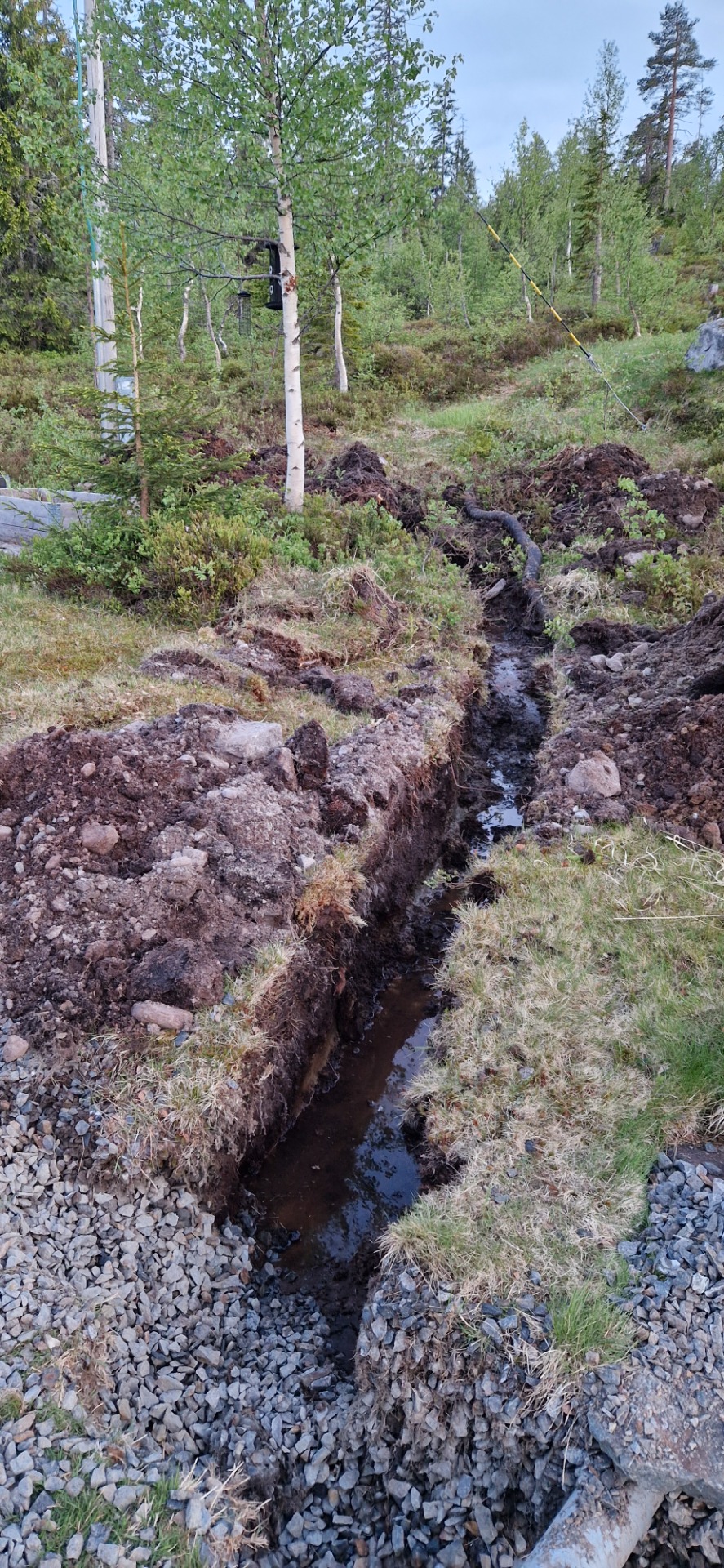 Med en flink maskinfører er veldig mye utrettet i dag! Dagen startet med å trekke ut den gamle støpen som var fundament for tidligere utvendig pipe og teglvegger.