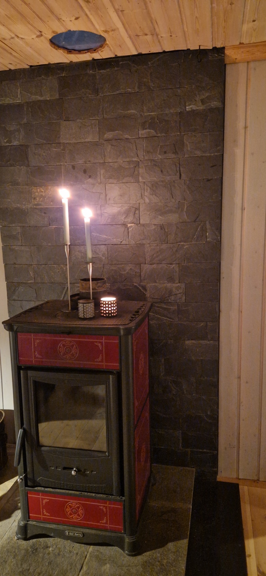 Det var nok ikke sirkulær økonomi som førte til dette fargerike hyttetaket med malingrester av hvitt, oransj og brunt. Det var nok heller hensynet til sparing. Det var dyrt å kjøpe nytt!